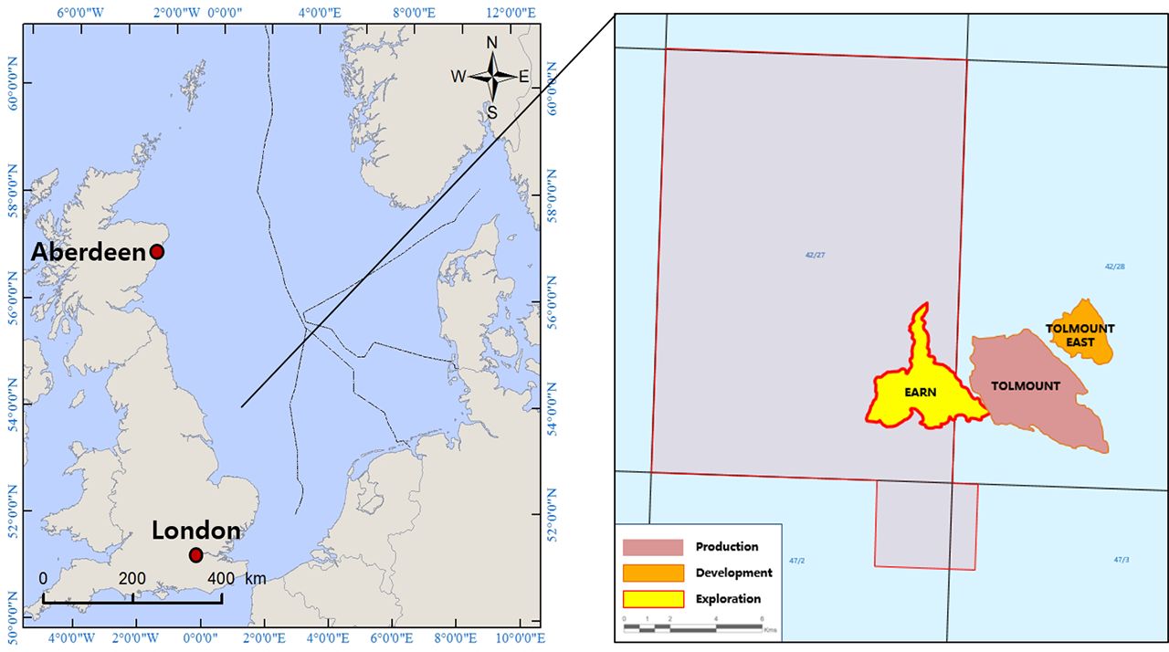 ¿µ±¹ ´Ù³ª»çÀÇ Å縶¿îÆ® ¸ÞÀÎ(Tolmount Main) ±¸Á¶¿¡¼ ¼ÂÊÀ¸·Î ¾à 4km ¶³¾îÁø ÁöÁ¡¿¡ À§Ä¡ÇØ ÀÖ´Â Earn ±¸Á¶´Â 2024³â 1ºÐ±â »ý»ê°³½Ã ¿¹Á¤ÀÎ Å縶¿îÆ® À̽ºÆ®(Tolmount East, ¸ÅÀå·® 1õ 8¹é¸¸ ¹è·² ±Ô¸ð) ±¸Á¶¿Í K2 ±¸Á¶´Â ¿¡º£·¹½ºÆ® »ý»ê½Ã¼³¿¡ Tie-inÇØ ¿¬°è °³¹ßÇÒ ¿¹Á¤ÀÌ´Ù. ÀÚü Ž»ç±â¼ú·ÂÀ» ¹ÙÅÁÀ¸·Î º¸À¯ ÀÚ»êÀÇ ÀÎÇÁ¶ó¿Í ¿¬°èÇÑ Àú¸®½ºÅ©, Àúºñ¿ë »ç¾÷À» °è¼ÓÇØ¼ ¹ß±¼ÇÑ Á¡ÀÌ À̹ø Ž»ç½ÃÃß ¼º°øÀÇ ÁÖ¿äÇÑ ¿äÀÎÀ¸·Î ÀÛ¿ëÇß´Ù.
